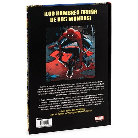 Una de las mayores aventuras jamás contadas: el encuentro entre Peter Parker, el asombroso Hombre Araña con el que empezó todo, y Miles Morales, el Spiderman Definitivo. Mientras sigue el rastro de uno de sus peores enemigos, Spidey se encuentra en un mundo donde la versión más joven de sí mismo ha muerto... ¡Y hay un nuevo Spiderman en la ciudad!